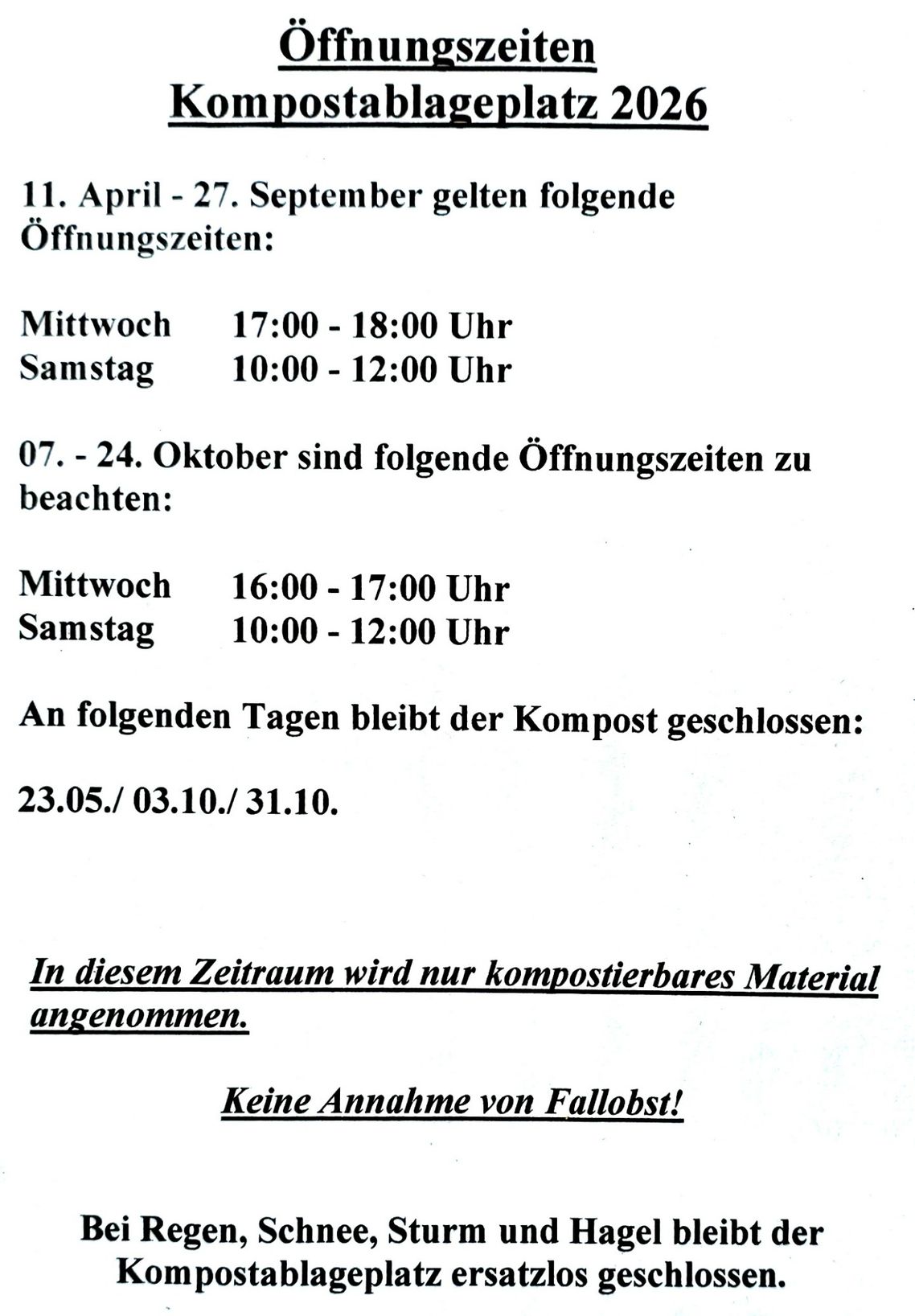 Hier findet man unsere Kompostplatz - Ablagezeiten